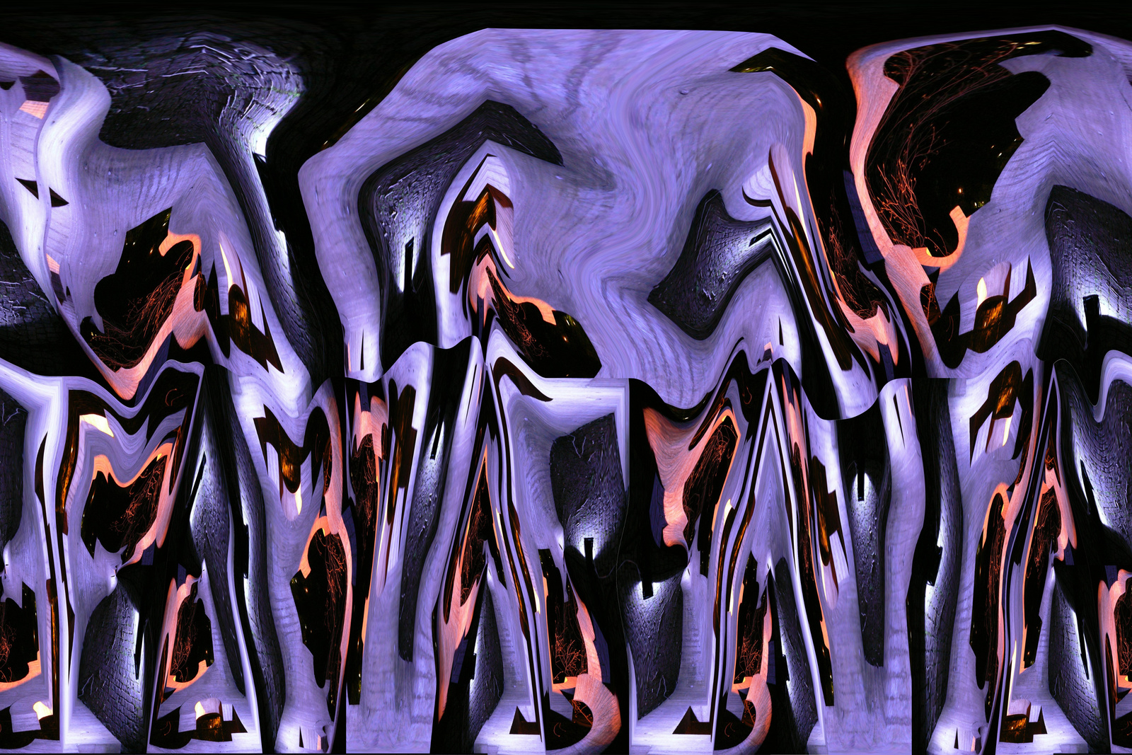 Auch hier sind wieder 8 Quadrate die Basis. Diesmal erzeugt aus dem Foto einer Betonskulptur in der Frankfurter Taunusanlage, während einer Luminale lila und rosa angestrahlt. Das Ausgangsgitter für die Transformation ist diesmal ein 4×4 Gitter. Nach der ersten Transformation wird das Bild auf ein 3:2 Format skaliert und erneut transformiert. Nach Anwendung eines finalen Warp-Effekts entsteht das Bild eines Tanzes von lila Elefanten und rosa Flamingos.
