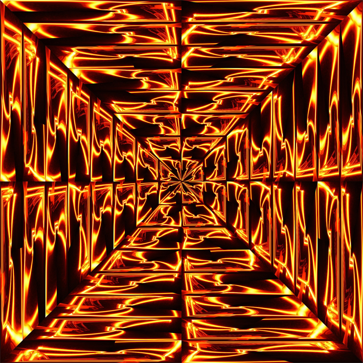 Für diese Komposition habe ich das Foto eines Neon-Kunstwerks auf 8 verschiedene Weisen gefiltert. In jedem Schritt entstand ein quadratisches Bild. Aus diesen 8 Quadraten erzeuge ich ein Gitter, in dem jedes der Bilder genau 8 Mal vorkommt. Danach wende ich einer Polar-Transformation an. Das Ergebnis ist sehr dekorativ und erzeugt einen schönen Tiefensog.