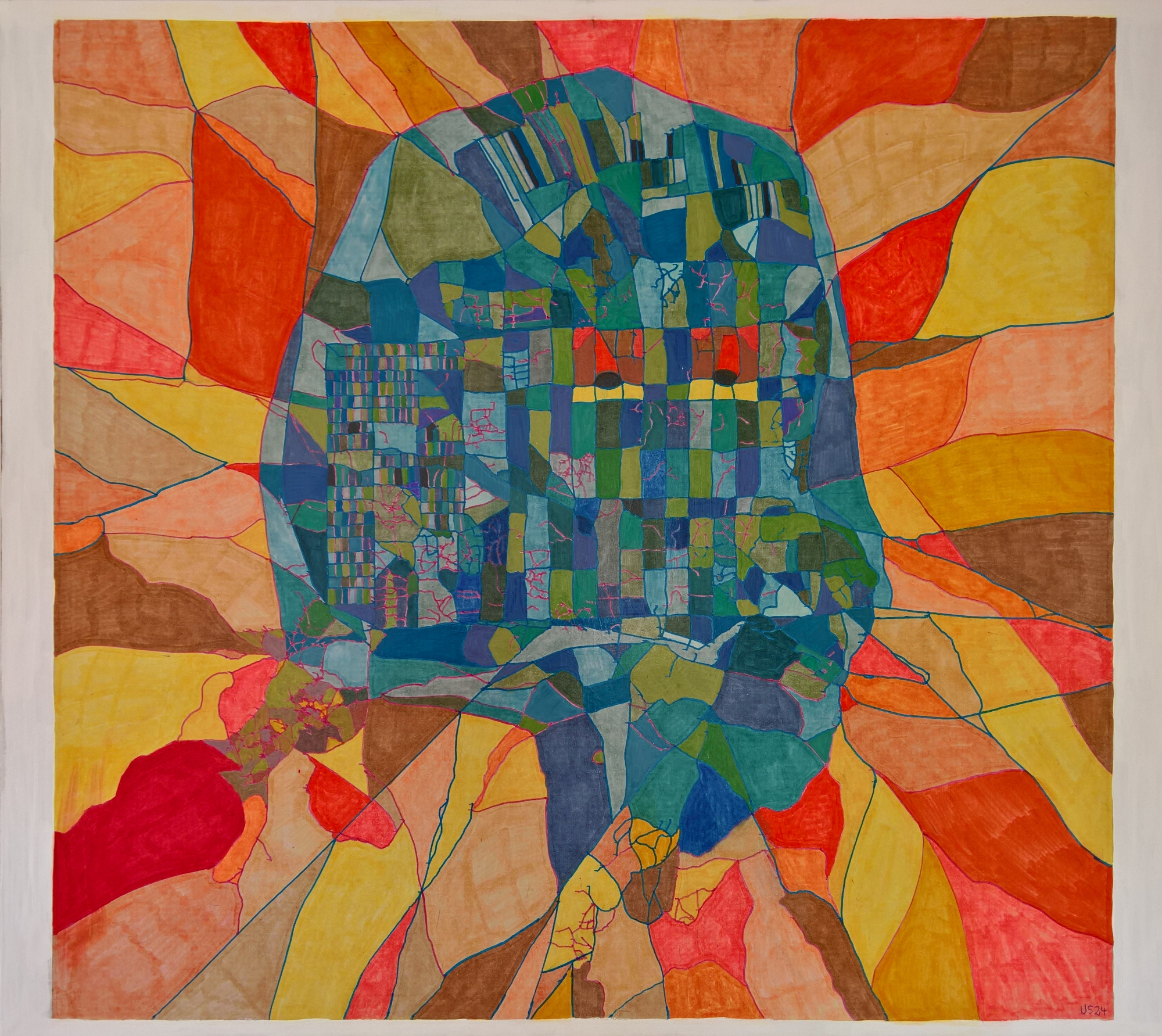 Dies ist mein zweites Bild aus der Serie „Refugee Camps“. Zur Technik findet man alles hier. Im Unterschied zum ersten Bild ist die zugrunde liegende Wegekarte nicht nach Norden ausgerichtet. Das herausgearbeitete Gesicht stellt eine verschleierte Frau dar. Das Camp Dagahaley liegt nur wenige Kilometer nördlich des Camps IFO in Kenia nahe beim Äquator und gehört zum selben UNHCR Komplex.